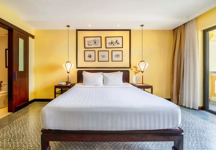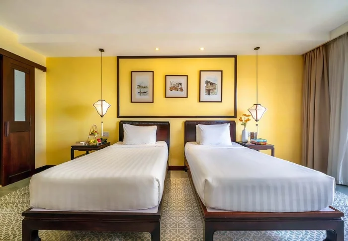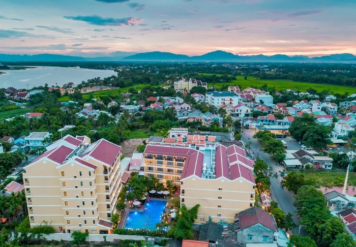 Hoi An Central Boutique Hotel & Spa enjoys a central location in Hoi An, just a few minutes’ walk from the historic Old Town. You’ll be staying close to the city’s atmospheric streets, where colourful lanterns light up the evenings and charming cafés, tailor shops, and local eateries sit side by side. The hotel blends colonial details with Vietnamese design elements, creating a distinctive and inviting atmosphere.
