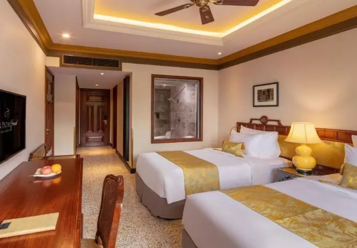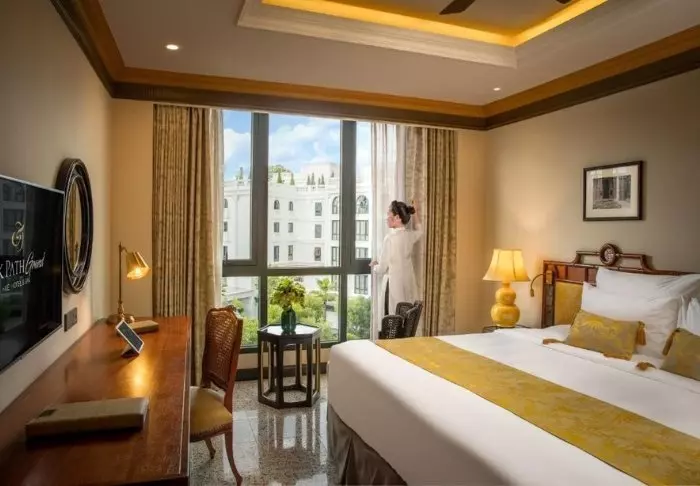 In the heart of the imperial city of Hué, you’ll find the unique and elegant Silk Path Grand Hotel, which exudes luxury and traditional Vietnamese culture. The hotel is ideally located for exploring the city’s attractions, including Hué Citadel and the Perfume River.