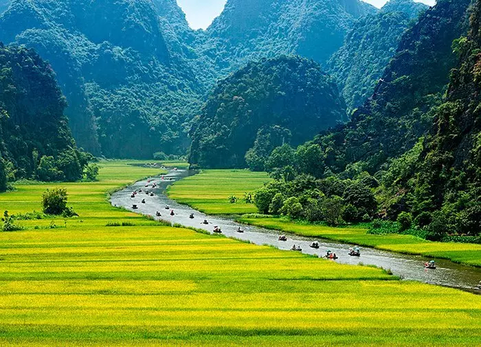 Around a 2-hour drive, 100 km south of Hanoi, lies Hoa Lu, which was the capital of Vietnam in the 10th and 11th centuries. Any remaining relics of that time have all but been engulfed by the spectacular surrounding landscape. Here, you enjoy a pleasant lunch at a local restaurant.