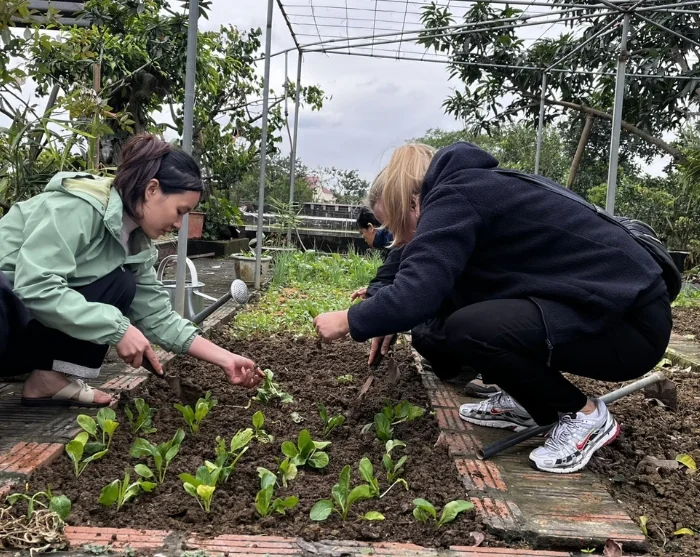 In the small village of Mai Trung, you’ll visit a local family who will give you a warm welcome into their home. Here, you’ll gain a genuine insight into rural life, taking part in seasonal activities such as working in the rice fields, gardening, or feeding fish and poultry. These tasks offer an authentic glimpse of everyday life in the Vietnamese countryside.