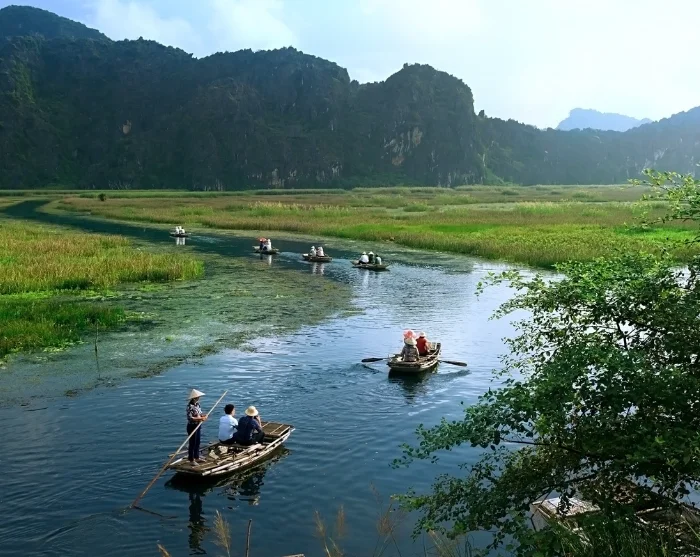 Join us for a day out in the rural province of Ninh Binh, where breathtaking scenery unfolds among rice fields, local villages, and towering limestone mountains.