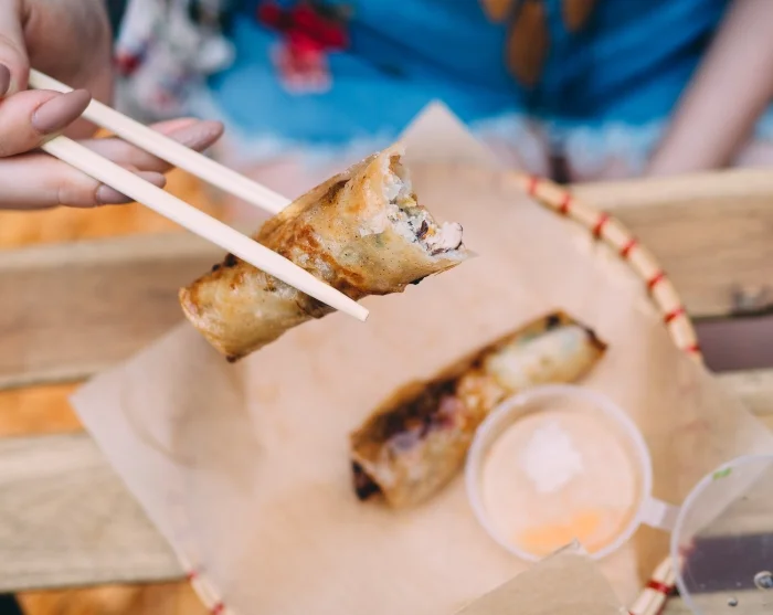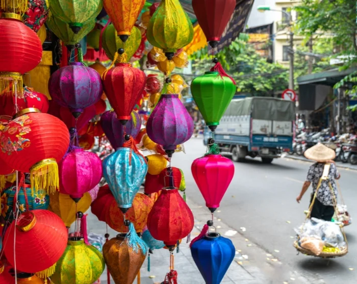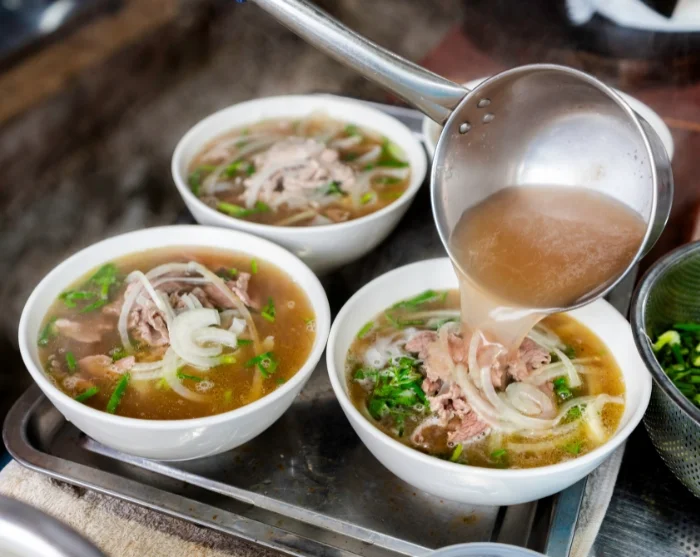 From here, wander down the narrow lanes and let your taste buds lead the way: sample crisp nem ran (spring rolls), the world-famous pho (noodle soup), sweet banh ran (deep-fried rice balls), and crunchy fried chicken thighs. Along the way, stroll down Hang Ma Street for a glimpse into local culture and daily life, before continuing to the charming bamboo corner—a cosy street spot brimming with bamboo crafts and bustling with locals.