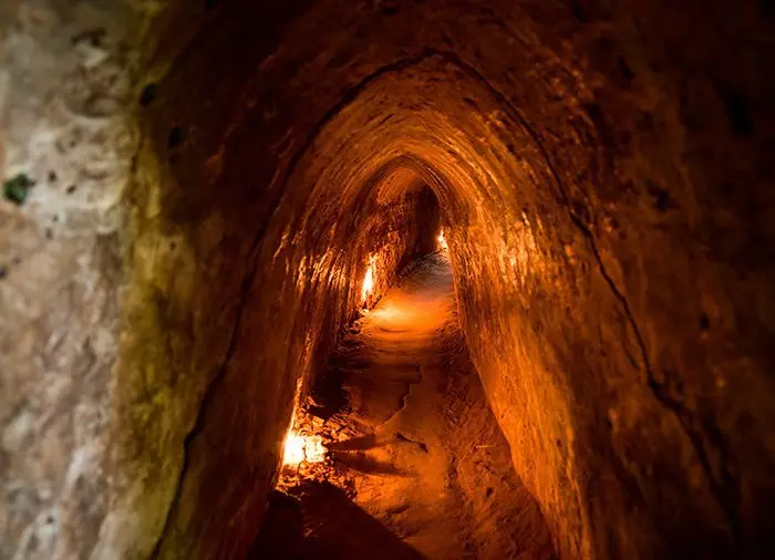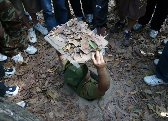 During the Vietnam War, the North Vietnamese Viet Cong constructed a labyrinth of tunnels, connecting subterranean command centres, accommodations, schools and training facilities, and as a staging ground for surgical strikes against the Americans. The entrance holes to the tunnel system are very narrow, as though the tunnel system itself were made for very slim people. The tunnel system was a perfect hideout for the Viet Cong, and it made an unparalleled staging ground for the surgical strikes the Viet Cong would become both famous and infamous for.
