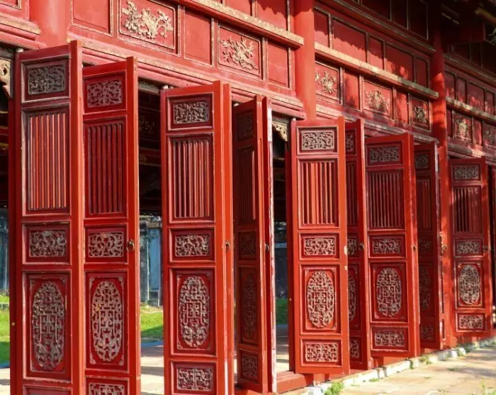 The tour then continues to the secluded An Dinh Palace. Built at the beginning of the 1900s as a residence for the imperial family, the palace combines Vietnamese imperial architecture with elegant European elements. Inside, you can admire impressive murals, gold ornaments, and ornate details, while the surrounding lush gardens exude tranquillity and grandeur.