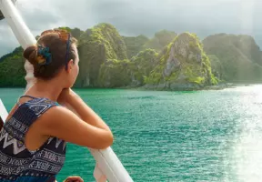 Here, you’ll sail between small, green-clad islands and local fishing communities, with the opportunity to explore the bay even further on a kayaking trip to the beautiful island of Cap La.