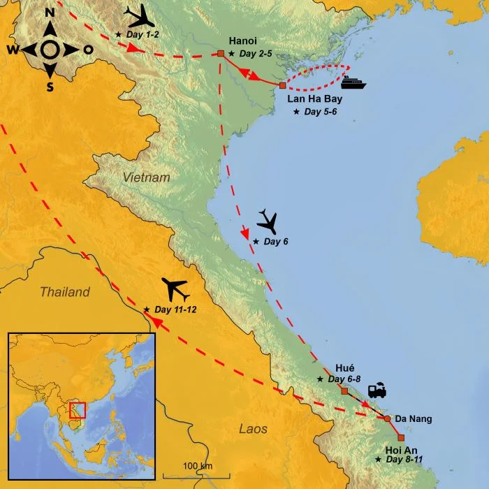 Join us on this tour through northern and central Vietnam, where you’ll discover the fascinating contrasts between lively cities, peaceful nature, and historic cultural towns.