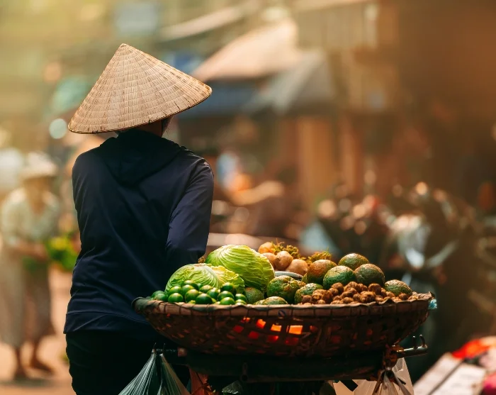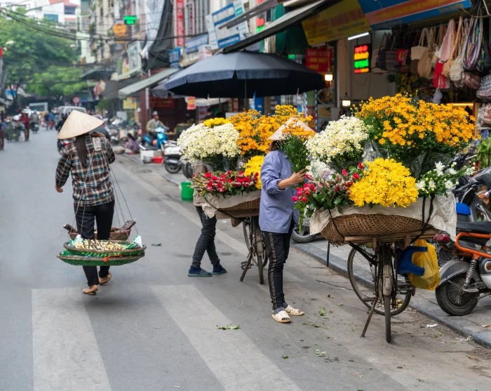 Afterwards, head towards the area around the Long Bien Bridge and the nearby Long Bien Market, where the bustling trade in fruit, vegetables, and flowers fills the streets, offering a vivid insight into the city’s everyday life. The pace is fast and the atmosphere is authentic, no matter the time of day.