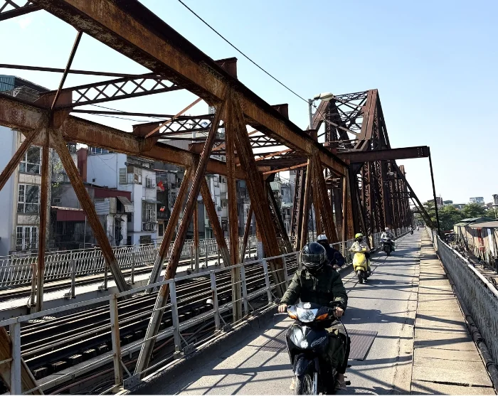 After an exciting cyclo ride, you’ll visit the historic Long Bien Bridge, an iconic landmark from the French colonial era built in the early 1900s. The distinctive iron bridge stretches across the Red River and was badly damaged during the Vietnam War, yet today it stands as a powerful symbol of Hanoi’s resilience and history. From the bridge, you’ll gain a vivid glimpse of everyday life in Hanoi, with locals commuting to and from work on scooters, cycling, or walking side by side. Looking down from the bridge, you’ll see the bustling Long Bien Market, alive with activity from the early morning, while the view over the river provides a calm contrast to the city’s vibrant pace. The bridge is a popular subject for photographers and travellers eager to capture the spirit of Hanoi.