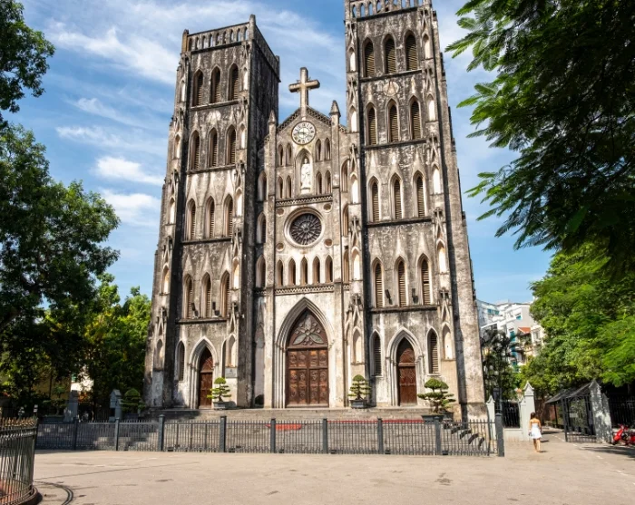 From there, make your way towards the beautiful Hoan Kiem Lake area, where narrow streets and French colonial buildings hide cosy cafés, colourful art galleries, and little shops. Sit down with a Vietnamese coffee and watch daily life unfold as locals and visitors cross paths. Not far away stands the iconic St. Joseph’s Cathedral, with its striking Gothic façade and lively square – a popular meeting place for both residents and travellers.