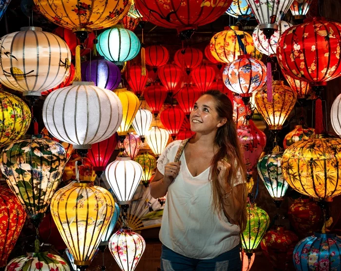 After checking in, you can enjoy your first evening in Hoi An. As night falls, the old town transforms into a living postcard. Colourful lanterns light up the streets and alleyways, reflecting in the Thu Bon River, while small boats drift gently across the water.
