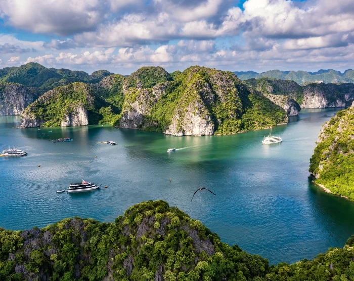 Lan Ha Bay lies just south of Ha Long Bay, extending around Cat Ba Island. It forms part of the same geological region and offers the same striking limestone formations, lush islands, and clear, green-tinted waters. However, Lan Ha Bay is less visited, marked by fewer boats, small floating fishing villages, and a landscape that feels far more untouched.