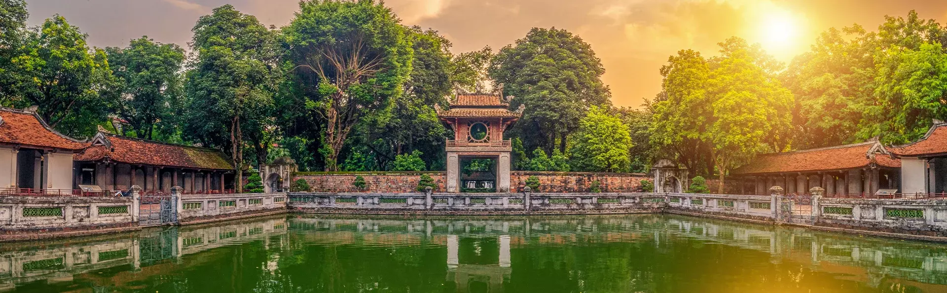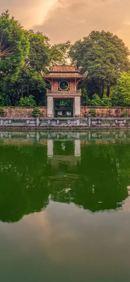You’ll then be driven to the Temple of Literature, a peaceful complex built in the 12th century by followers of the Chinese philosopher Confucius. With nearly a thousand years of history, the temple is a rare and well-preserved example of traditional Vietnamese architecture, complete with colonnades, ponds, and verdant courtyards, where young students still come to pray for luck before their exams.