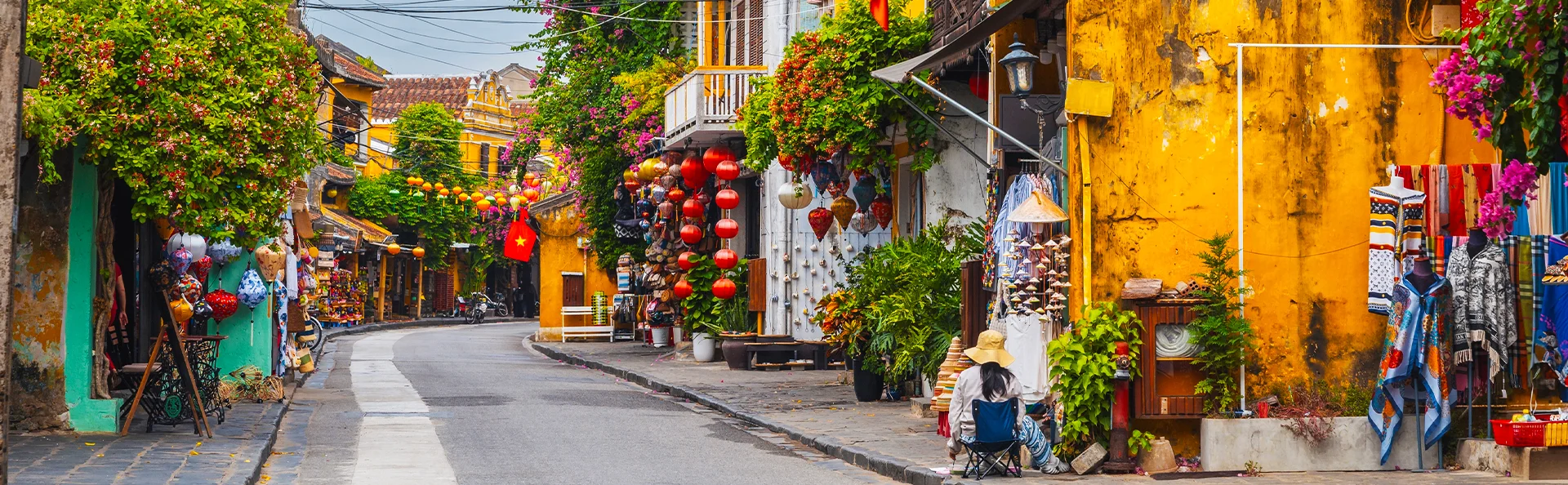 Away from the river, you’ll discover a maze of small, atmospheric streets. Here, you’re greeted by a vibrant blend of Japanese timber houses, Chinese assembly halls, French colonial buildings, and the distinctive merchant houses. Colourful lanterns hang like garlands above the streets, creating a truly special atmosphere – especially once darkness falls. Shops, street food stalls, cafés, and small restaurants dot the lanes like beads on a string, inviting you to unwind, explore, and soak up the unique character of the place.