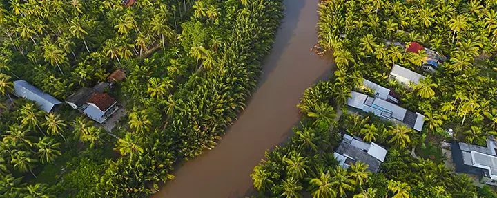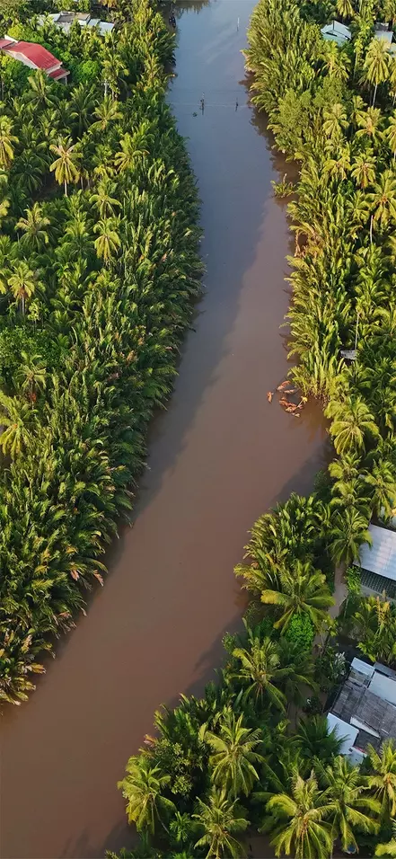 After around 2.5 hours on the road, you’ll reach the town of Cai Be. Here, you’ll board a boat to begin your journey into the lush Mekong Delta. You’ll visit local workshops where skilled artisans craft products from coconut. Your journey continues aboard a small sampan—a traditional, hand-rowed wooden boat—taking you through the Mekong Delta’s narrow, winding channels.