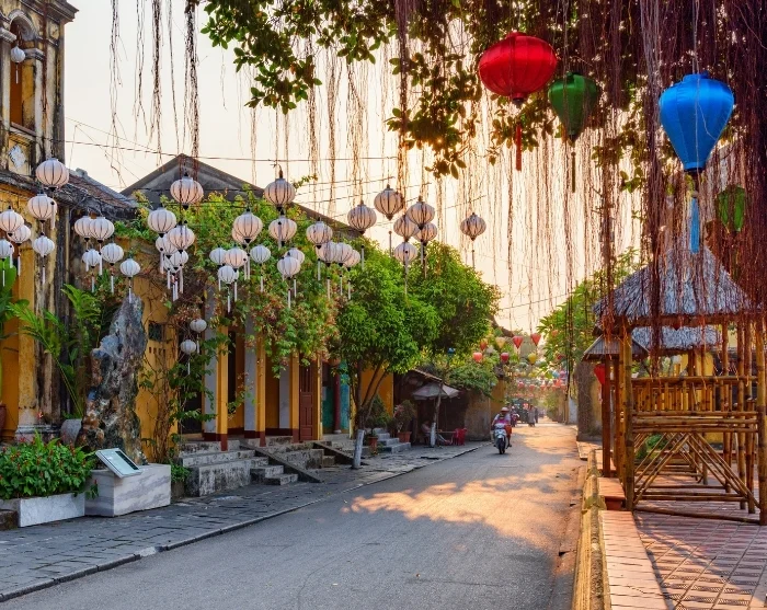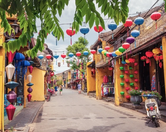 Move away from the river, and you’ll discover a maze of atmospheric lanes. Here, you’ll encounter a vibrant blend of Japanese wooden houses, Chinese assembly halls, elegant French colonial buildings, and the distinctive merchant homes. Colourful lanterns hang in garlands overhead, creating a magical ambience—especially as dusk falls. Shops, street food stalls, cafés, and intimate restaurants line the streets, inviting you to relax and explore at your leisure.