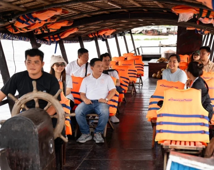 After around two and a half hours’ drive, you’ll arrive in the city of Cai Be – a charming riverside town in the Mekong Delta, famed for its lush fruit orchards and authentic village atmosphere. Here, you’ll board a boat to explore the fertile delta. You’ll visit local workshops where skilled artisans craft products from coconut. Afterwards, continue by sampan – a traditional, hand-rowed wooden boat – gliding through the Mekong Delta’s narrow, winding canals.