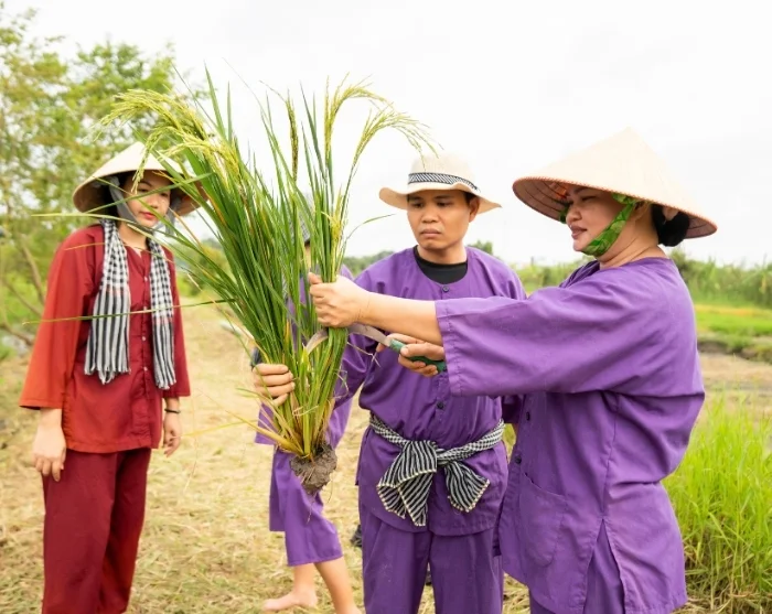 Your next stop is our socal sustainability project in Vinh Long, initiated by our local partner. Here, a gentle walk through the village awaits, with your guide offering insights into the initiative along the way. You’ll also have the opportunity to experience traditional rural life firsthand. Together with local farmers, you can try your hand at rice cultivation—either planting young seedlings or helping with the harvest, depending on the season. This is an engaging and down-to-earth experience, giving you a unique perspective on daily life in rural Vietnam and the work that goes into sustainable agriculture. By joining the tour, you’ll also help make a difference for families in Vinh Long, as a percentage of the tour price goes directly to the project. You can find out more about it here.