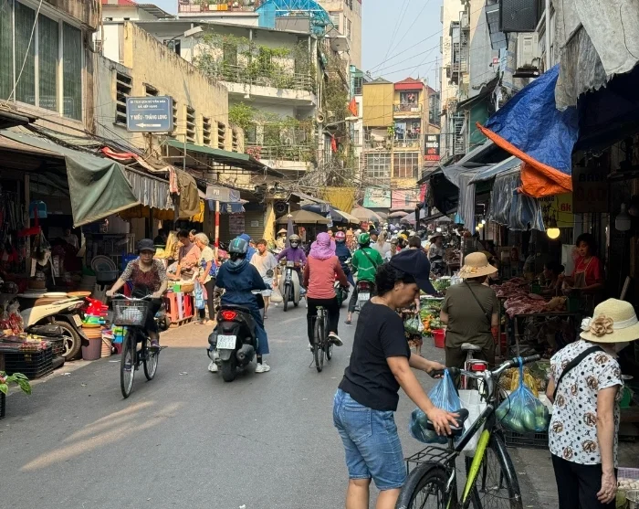 The tour then continues in a traditional cycle rickshaw – known locally as a cyclo – winding through the Old Quarter’s maze of narrow streets and lively markets. The Old Quarter is famous for its 36 streets, each originally named after the goods once traded there: bamboo, silk, paper, and tin. Many streets still bear their original names, and the area brims with local charm, with Hanoians shopping, chatting, and serving steaming bowls of pho from bustling street kitchens.