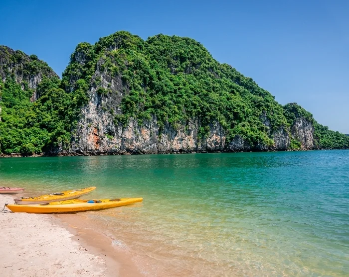 This afternoon, you’ll have the chance to go kayaking at the stunning Cap La Island, famed for its majestic limestone formations and crystal-clear coves. The water here is usually calm and shallow, making it ideal for both beginners and experienced kayakers to paddle among towering cliffs and hidden lagoons. You can also take a refreshing swim or simply sit back, unwind, and soak up the calm and natural beauty.