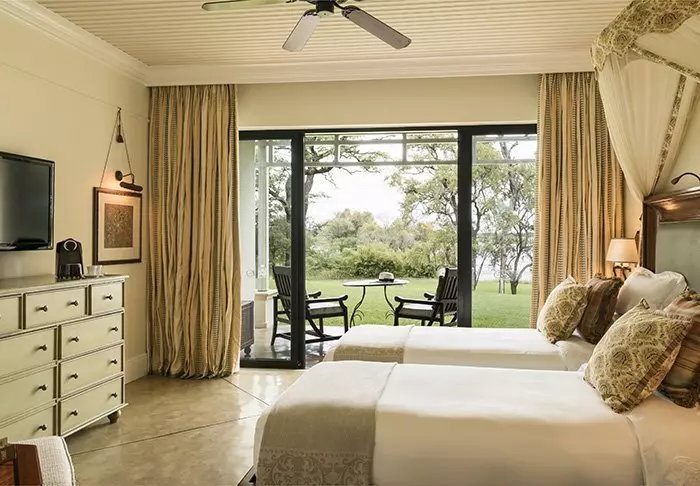 It has 173 rooms, divided into small houses of 6–8 rooms in an almost park-like garden. Each room has its own terrace or balcony overlooking the Zambezi River and has air conditioning, a safe and a TV.