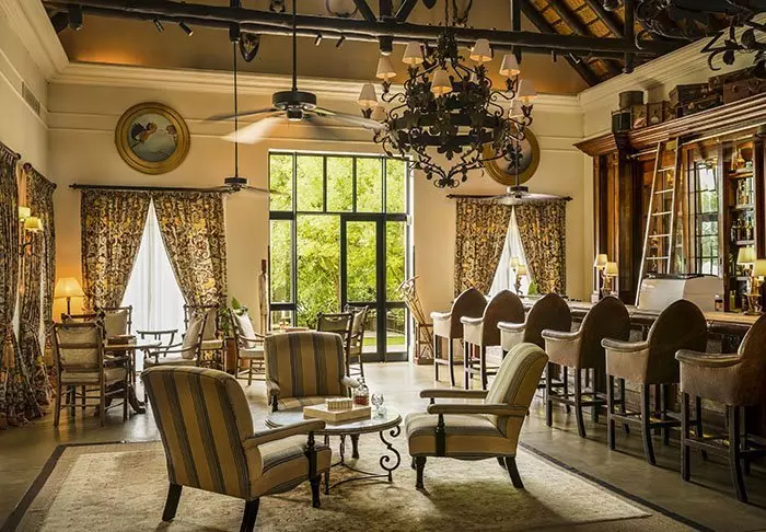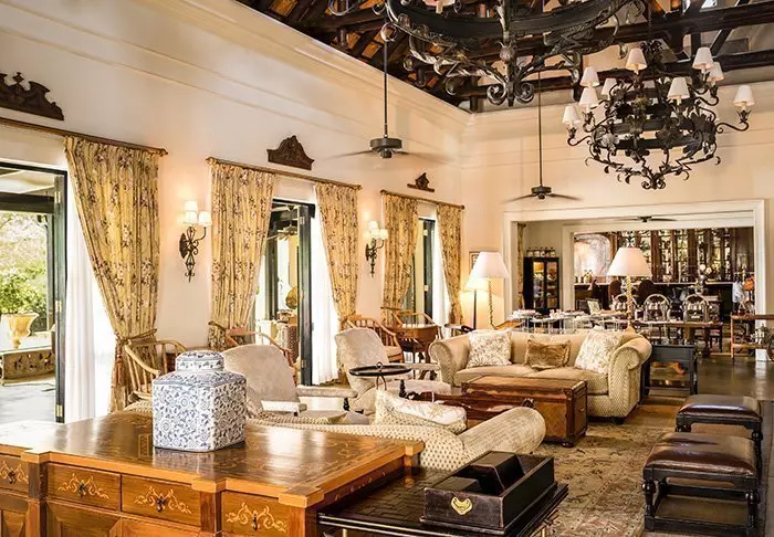 The five-star hotel is built in an exclusive style dating back to colonial Africa with dark furniture and animal skins and is a five-star hotel in every way.