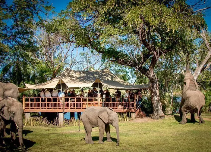 Situated on the banks of the Zambezi – a mere 10 km from Livingstone – is Elephant Café. Elephant Café is home to 10 elephants which, for one reason or another, no longer live in their own herds. Some of the elephants have been rescued from poachers, while others were born in captivity and cannot survive in the wild. Elephant Camp is their home. They can, in principle, come and go as they choose, but they all feel a strong attachment to their keepers, and even though they might go off on a daily foray into the bush, they always come back.
