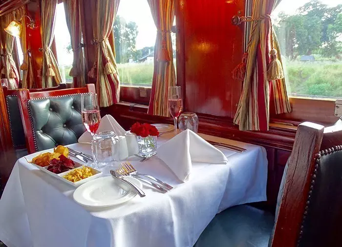 After the stop on the bridge, the trains head back to either Zambia or Zimbabwe, and it’s time for you to find the elegant dining car where a five-course meal with wine is served.
