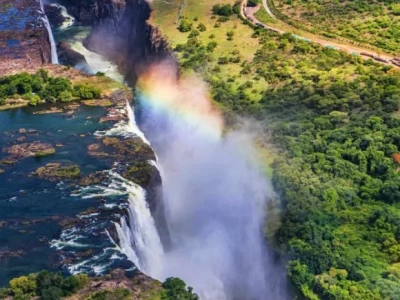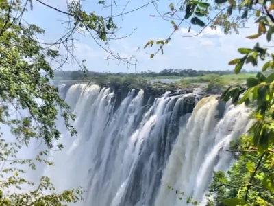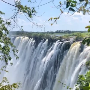 Victoria Falls is one of the largest waterfalls in the world and is located on the border of Zambia and Zimbabwe.
