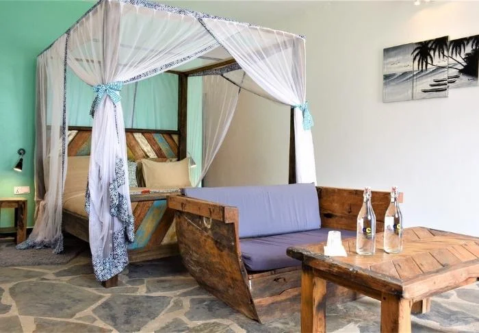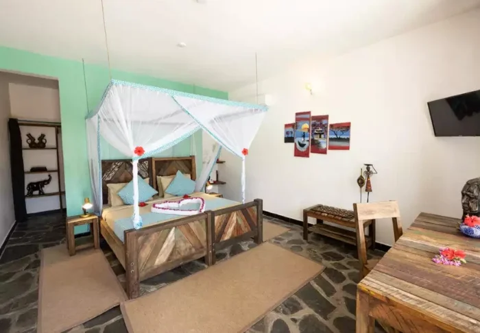 At Zanzibar Bay, you will find 104 rooms with mosquito nets over the beds, air conditioning, a flat screen TV, tea and coffee making facilities, a terrace and free Wi-Fi.